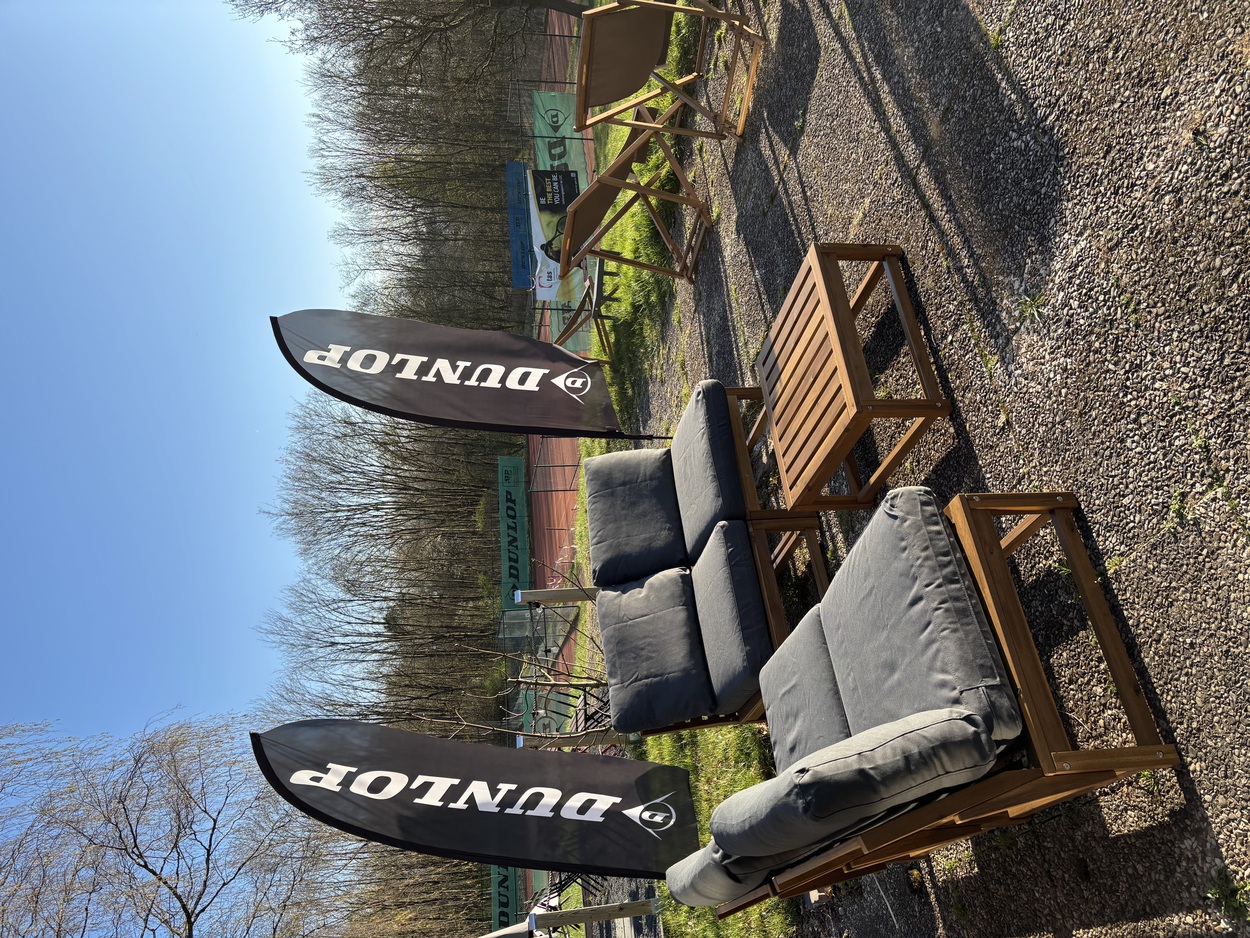 Leihschirme für einen trockenen Weg von der Tennishalle zu Zorans Gaststätte und den Duschen stehen im home of tennis bereit. Getränke gibt's im Getränkeautomaten oder könnt Ihr auch direkt bei Zoran mit einem Walkie-Talkie in der Tennishalle bestellen.